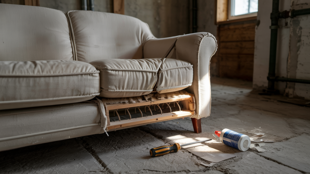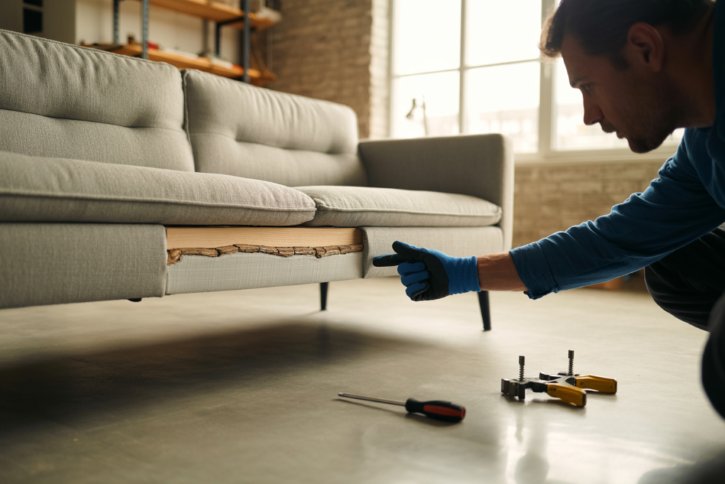 If the entire frame is weak or sagging in multiple places, it might be more cost-effective to replace the couch—especially if it’s made from particleboard, which doesn’t hold screws well after damage.