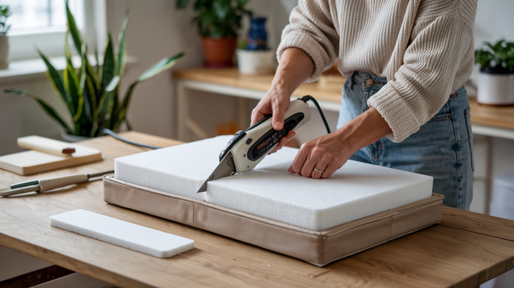 You don’t need a full reupholstery to fix this. Just replace the old foam with high-density foam. It’s firm, long-lasting, and gives your cushions their shape back. You can find cushion foam at stores like Joann or Amazon.