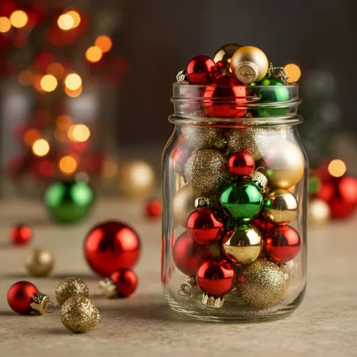 A beautiful way to use leftover ornaments. Fill a jar with mini ornaments, pine sprigs, or fairy lights. It’s simple but elegant, perfect for tabletops and shelves.