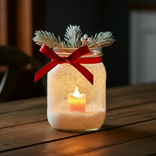 This one always reminds me of those quiet December nights when everything outside looks sugar-coated. All you need is a jar, some faux snow, Mod Podge, and a small LED tealight. Brush the outside, roll it in “snow,” tie a ribbon, and boom—you’ve got a cozy lantern. It looks store-bought but costs almost nothing.