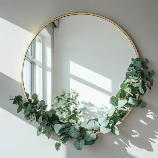 Round mirrors are already an eye-catcher, and when you drape garland loosely over them, the curve softens the greenery beautifully. It works especially well with simple, thin frames.