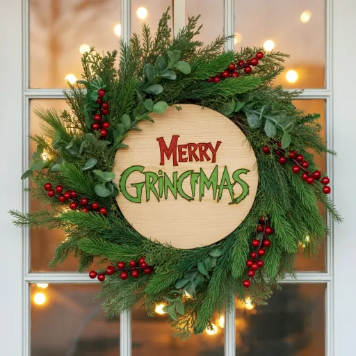 Inspired by the famous song, this wreath often includes dark greens, fuzzy textures, or an angry Grinch face. It’s playful but with a slightly mischievous edge.