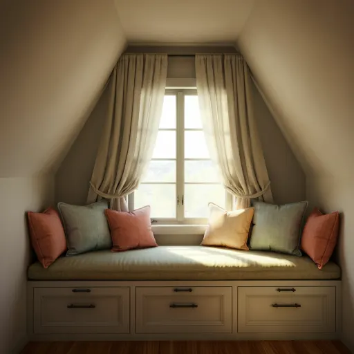 A window bench makes use of every inch near dormers or low windows. It becomes a natural gathering or reading spot and often doubles as storage. Add plush cushions, soft throws, and you’ve got an instant favorite corner.