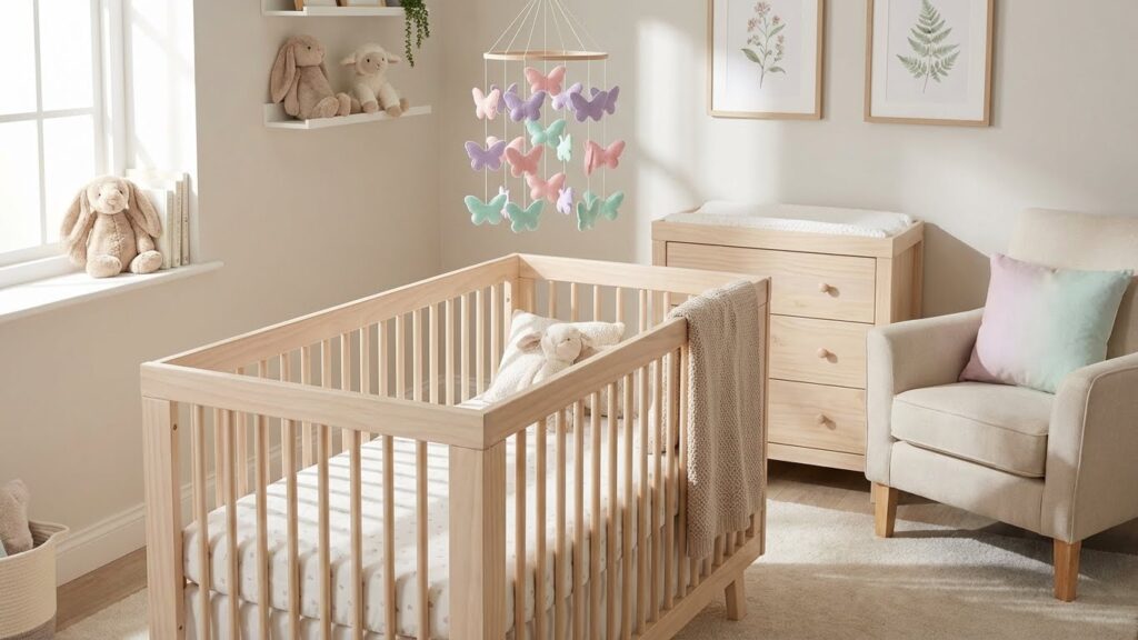 A butterfly mobile isn’t just decorative—it’s an interactive experience for your baby. Opt for soft fabrics, felt, or lightweight wood butterflies in pastel shades. The gentle movement above the crib stimulates visual tracking skills while adding a dreamy aesthetic. I once hung a lavender and peach mobile over my friend’s baby’s crib, and it became the focal point of the room, perfectly complementing her wall decals. Pro tip: coordinate the mobile colors with bedding and curtains to create a cohesive look. You can even add a gentle musical component for added sensory stimulation during bedtime.
