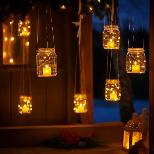 Hang clear jars filled with LED candles to create a warm, glowing effect. They look beautiful on porches or in dim corners of the house. They add both light and visual interest without overwhelming the space.