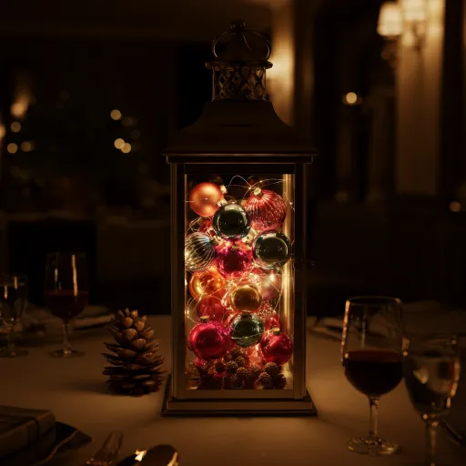 A: Combine a lantern with ornaments, fairy lights, pinecones, or berries. Place it on a tray or table runner for a festive display.