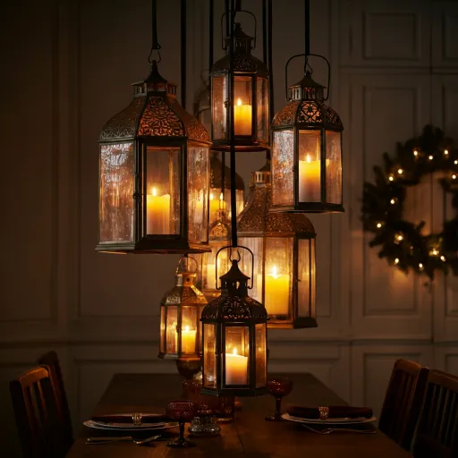 Place lanterns with candles in corners or on side tables for a cozy, intimate glow. Scented candles can also add a holiday fragrance.