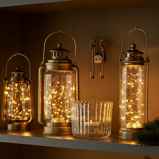 Fill lanterns with battery-operated fairy lights for a magical glow. You can hang them from hooks, place them on shelves, or line your staircase. The twinkling lights instantly create a festive ambiance.