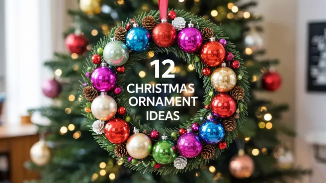 Use a foam or wire wreath form, glue on ornaments in layers, and fill gaps with smaller ornaments or greenery.