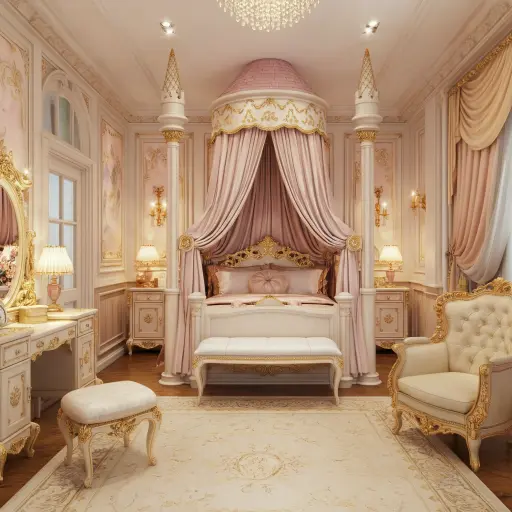Turn bedtime into a royal event. Build or buy a bed frame shaped like a castle turret, then drape sheer curtains for a royal canopy. Use pastel-colored walls and gold-trimmed furniture for that regal feel. A chandelier-style light fixture adds the final magical touch. This theme works perfectly for a child who loves dressing up as a prince or princess.