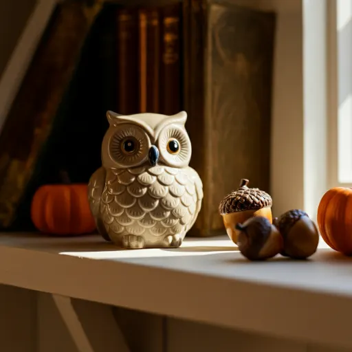 Tiny woodland creatures, acorn statues, or ceramic owls tell a fall story. I like grouping three items for balance—odd numbers look more natural.