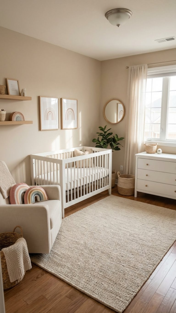 3. Neutral Nursery With Rainbow Pops