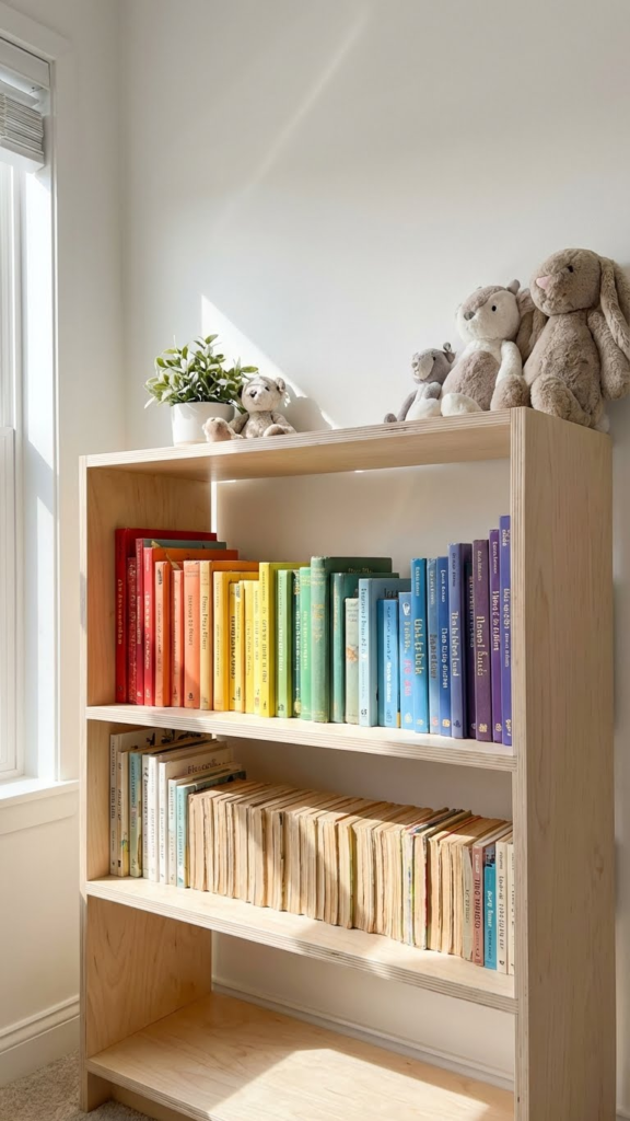 Children’s books with colorful spines double as decor. Stack or display them by color order. It’s practical, budget-friendly, and adorable. Plus, it encourages early reading habits—something you’ll thank yourself for later.