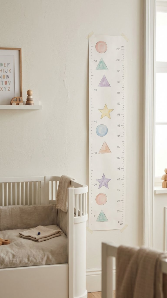 A Toy Story growth chart adds both function and sentiment. Choose one with soft colors and minimal characters so it blends naturally into the room.