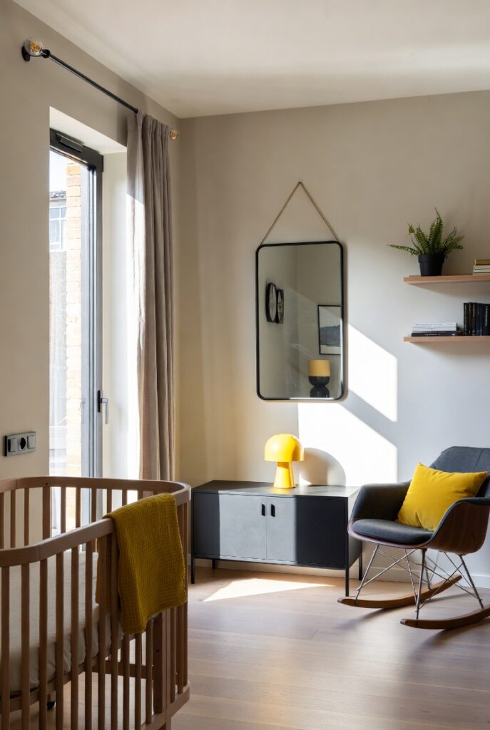 For a modern look, keep lines clean and colors intentional. Use yellow sparingly—maybe a chair, lamp, or artwork. Pair it with black accents or charcoal gray. This style feels fresh and stylish without losing that nursery softness.