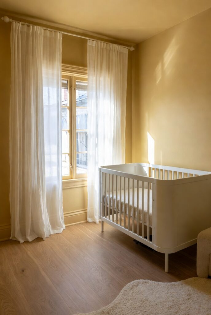 Not ready to commit to yellow walls? Start with bedding. A yellow crib sheet or quilt instantly brightens the room. It’s low-risk and easy to change later. I recommend simple patterns or solids to keep things calm. Pair with neutral walls so the crib becomes the soft focal point.