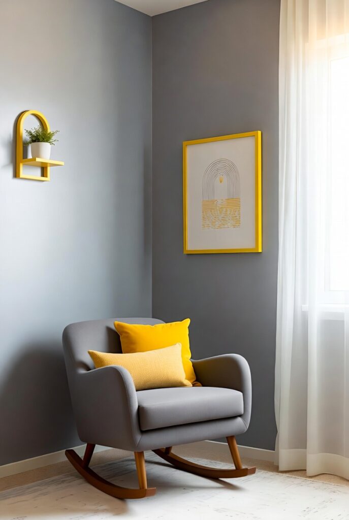 Yellow and gray are a classic pair for a reason. Gray grounds the brightness, while yellow adds warmth. Use gray for walls or furniture, then layer in yellow decor. This combo feels modern and gender-neutral. It also photographs beautifully, which parents secretly love.